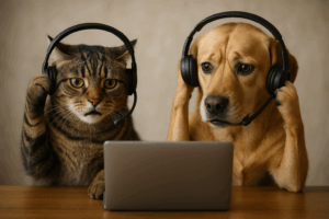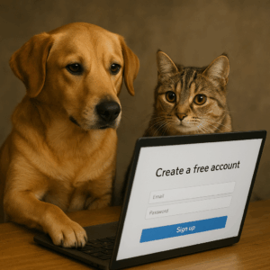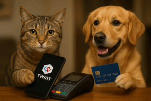 Photo 2: A photo showing today’s date and the website address https://tierbetreuung24.ch/ handwritten on a sheet of paper.